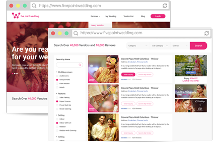 Your wedding is the most important day of your life and that day requires a whole lot of planning. To make a wedding perfect, months of planning and effort needs to go in to it on so many different fronts. The task gets further herculean because the wedding industry is highly unorganised and scattered and hard to access. 5 point wedding helps you reduce this effort and take out all the wedding hassles by bringing everything you need for a perfect wedding on a single user friendly platform. By streamlining your efforts and helping you stay organised and on schedule, 5 point wedding helps make wedding plan a lot more fun.